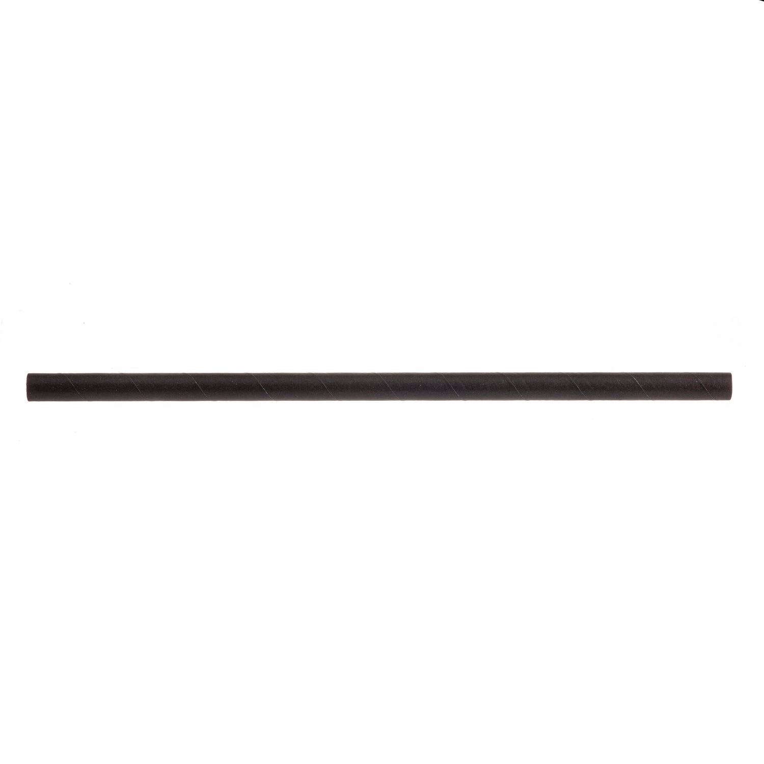The Tablecraft 700107 Straws 7-3/4"L 8mm Thick are commercial-grade disposable beverage straws designed for high-volume foodservice operations. Crafted from environmentally friendly PLA material, these black-colored straws measure 7-3/4 inches in length with an 8mm wall thickness, providing durability and rigidity suitable for various drinking applications. Individually wrapped for sanitation and ease of handling, they are ideal for restaurants, cafes, catering events, and hospitality venues seeking reliable, food-safe straw solutions with optimal dimensional precision. The product is packed by the case, with 300 units per pack and must be purchased in multiples of 24 packs, making it suitable for bulk supply needs in demanding commercial environments.
