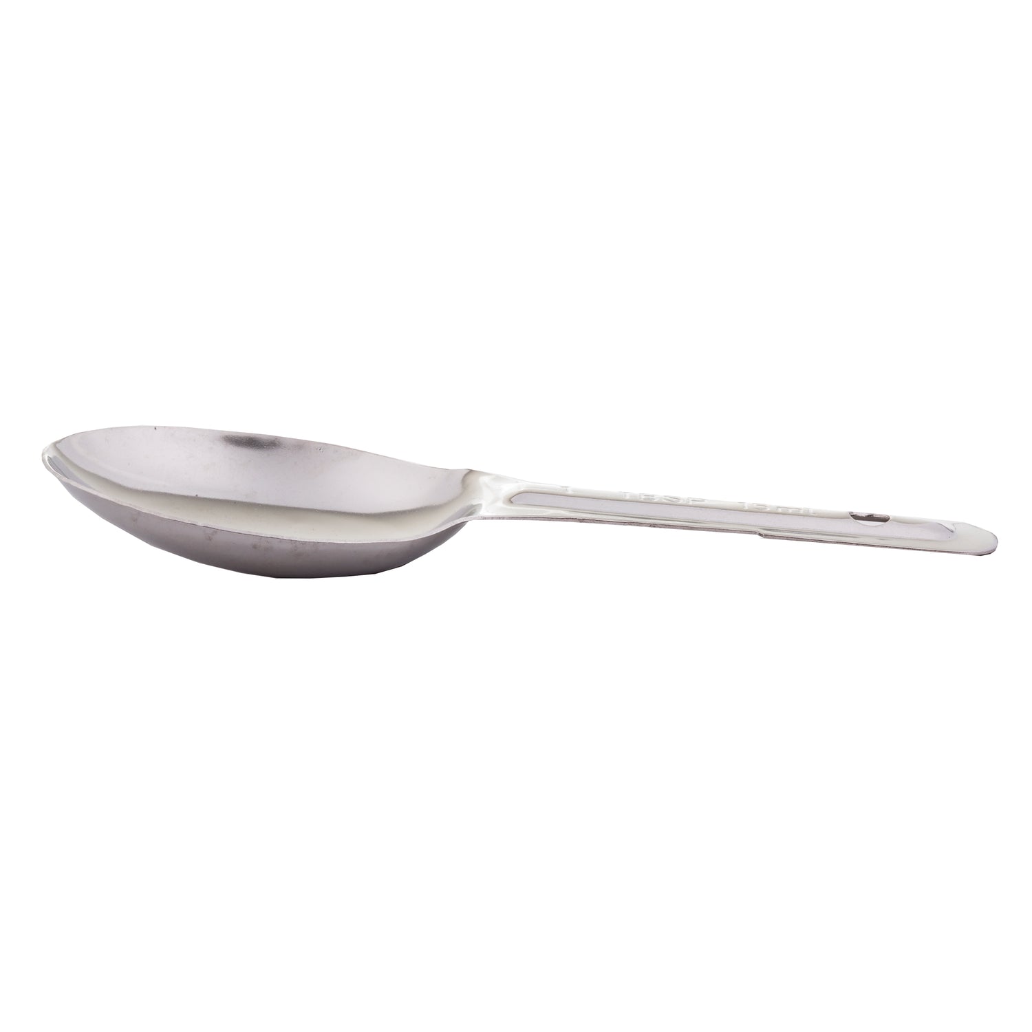This measuring spoon emphasizes durability with stainless steel construction, ensuring long-term use amidst rigorous cleaning cycles. Its 1 Tbsp. capacity is perfectly suited for portioning ingredients efficiently; a dishwasher-safe feature simplifies maintenance in high-throughput kitchens. Designed for handheld use, it fits seamlessly into mass prep workflows, and its corrosion-resistant steel withstands daily commercial use. Its compact size supports ergonomic handling and space-efficient storage, making it suitable for diverse kitchen setups.