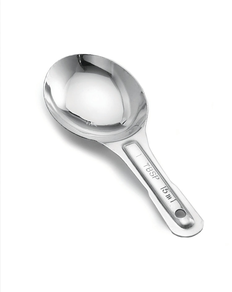 A commercial measuring spoon is a precision utensil used in professional kitchens for accurate ingredient portioning. Typically made from stainless steel for durability and easy cleaning, these spoons are designed to withstand high-volume use in foodservice settings such as restaurants, catering, or institutional kitchens. The Tablecraft 721D Measuring Spoon 1 Tbsp. is equipped with a compact size, durable construction, and dishwasher-safe feature, making it an essential tool for reliable measurement in quick service and large-volume food preparation environments. Used primarily for controlling recipe consistency and portion sizes, it is especially suitable for busy kitchen workflows where efficiency and sanitation are priorities.
