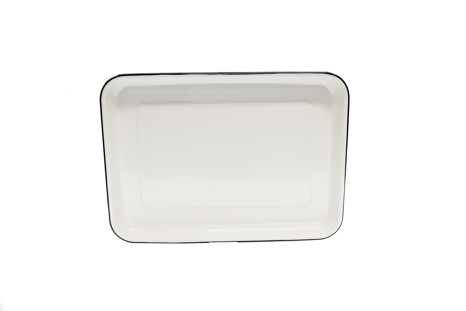 Tablecraft 80012 16 Inch Rectangular Serving Tray Vitreous Porcelain Enamel Steel Creamy White with Black Rim