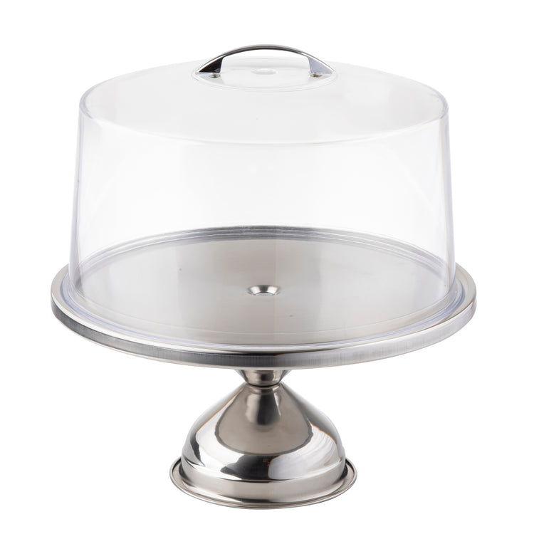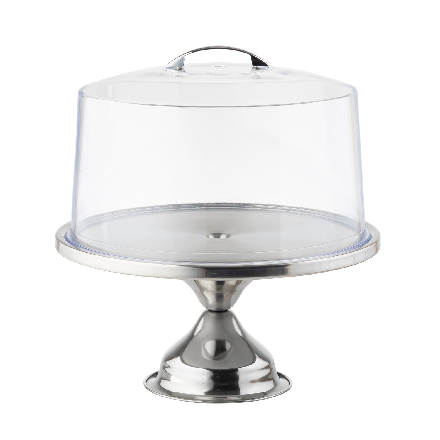 Tablecraft 821422 12-3/4 Inch Cake Stand with Clear Cover and Metal Handle