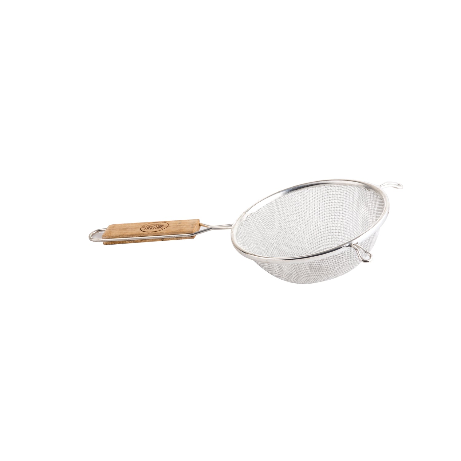 The Tablecraft 86 Mesh Strainer offers reliable filtration with a durable tin-plated mesh, facilitating efficient hand washing and high responsiveness in commercial kitchen workflows. Its single medium mesh design provides effective fine screening, while the wooden handle allows safe handling during continuous use. This strainer’s construction supports consistent, hygienic operation, making it suitable for foodservice environments that demand precision and durability.