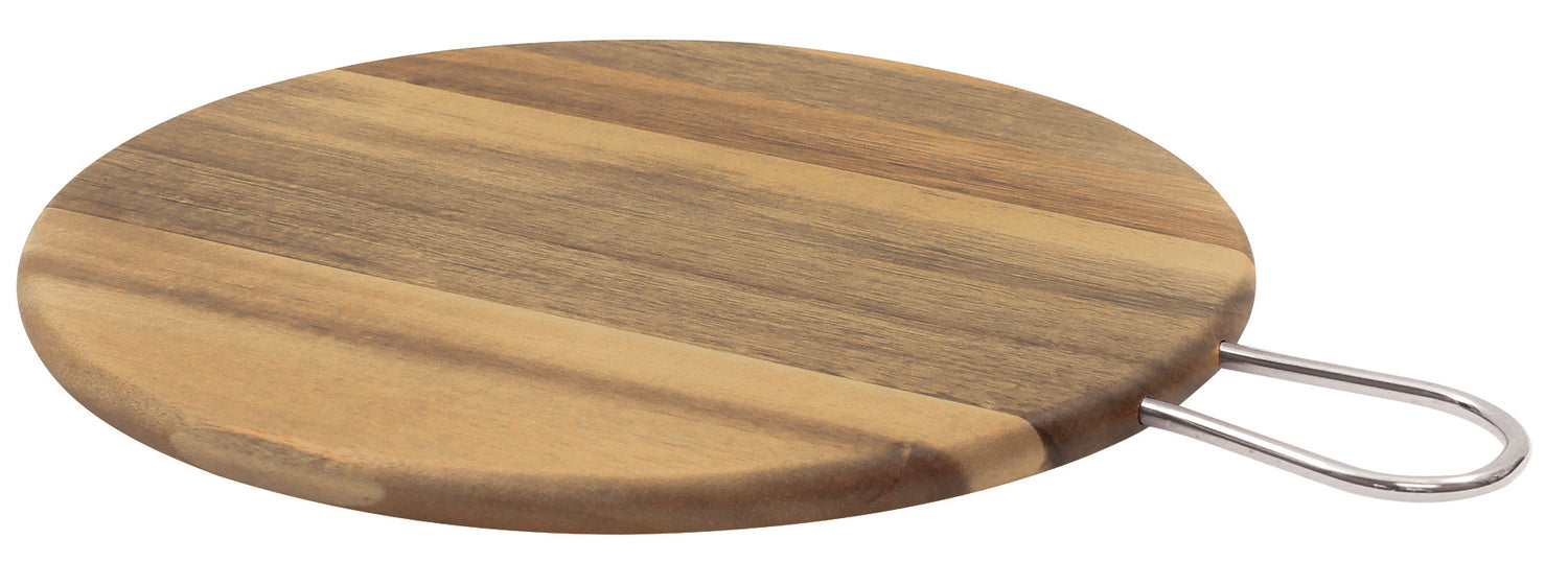 Tablecraft ACAMR10 10 Inch Diameter Round Serving Board with Metal Handle Wood