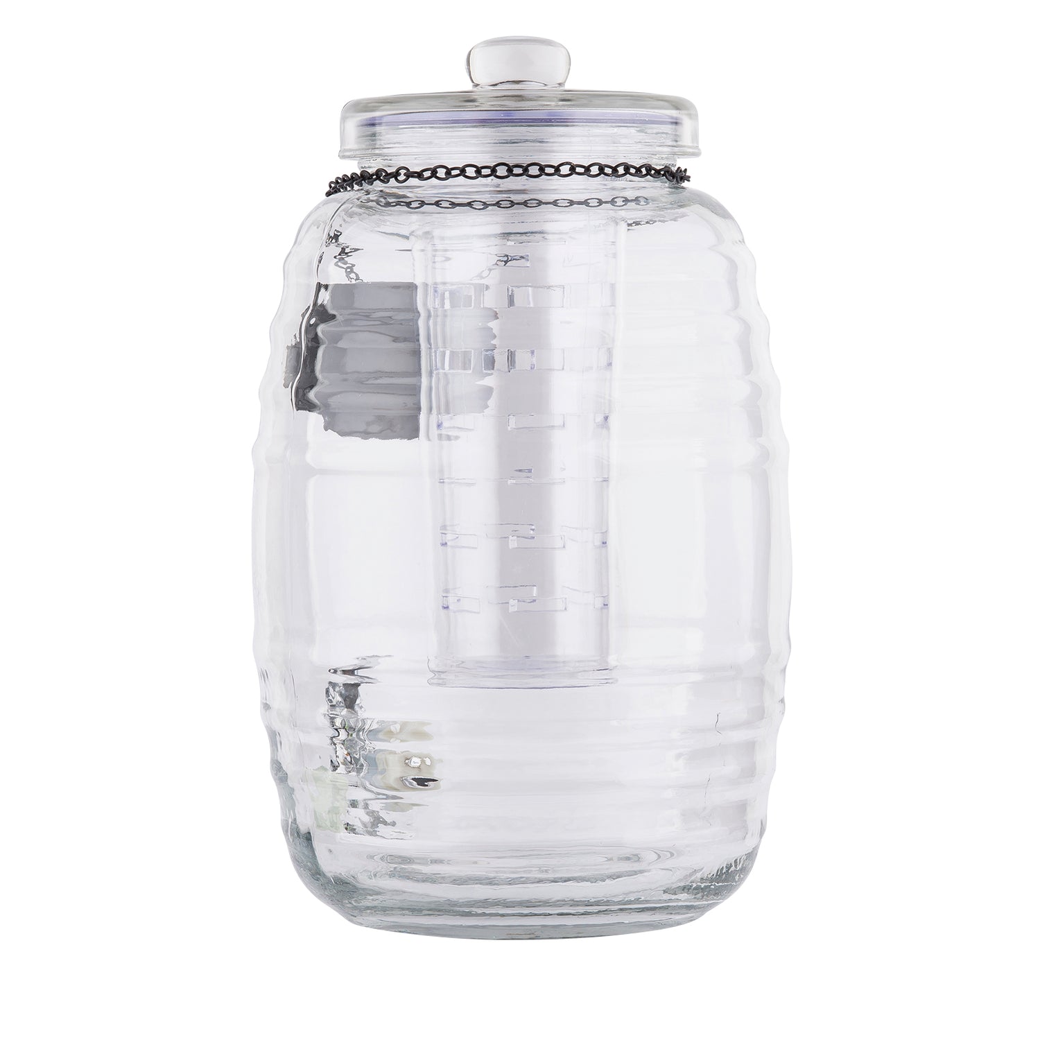 - Glass vessel with integrated ice core and infuser.
