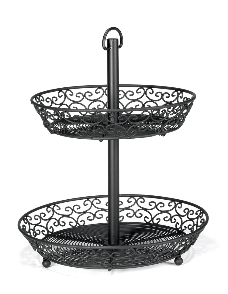Tablecraft BKT2A 10 Inch Two-tiered Display Basket Black Powder-coated Steel