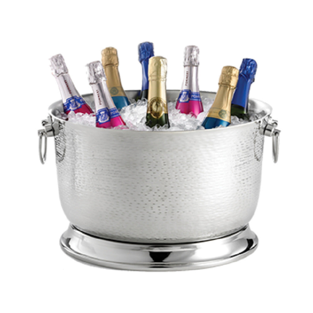 The Tablecraft BTB1610 beverage tub is a commercial-grade unit featuring stainless steel construction with a 15-3/4" diameter and 9-1/2" height. Its double-wall design provides efficient thermal insulation for extended cold retention, suitable for high-traffic foodservice environments. The unit weighs 9.23 lbs and includes a sturdy base for stability during serving. It operates entirely without electrical requirements, relying on the insulating properties of its double-walled stainless steel. The product’s large capacity makes it suitable for storing multiple bottles or ice, optimizing workflow for bartenders, caterers, and event coordinators. Its corrosion-resistant surface allows for quick cleaning and maintenance, ensuring sanitation compliance in busy settings.