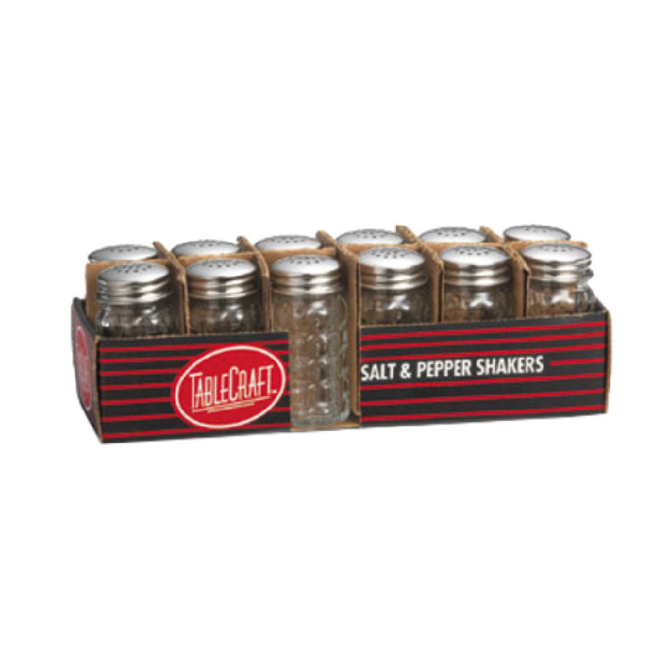 Tablecraft C163-12 1-1/2 Oz Salt Pepper Shaker Nostalgia Glass Stainless Steel Tops