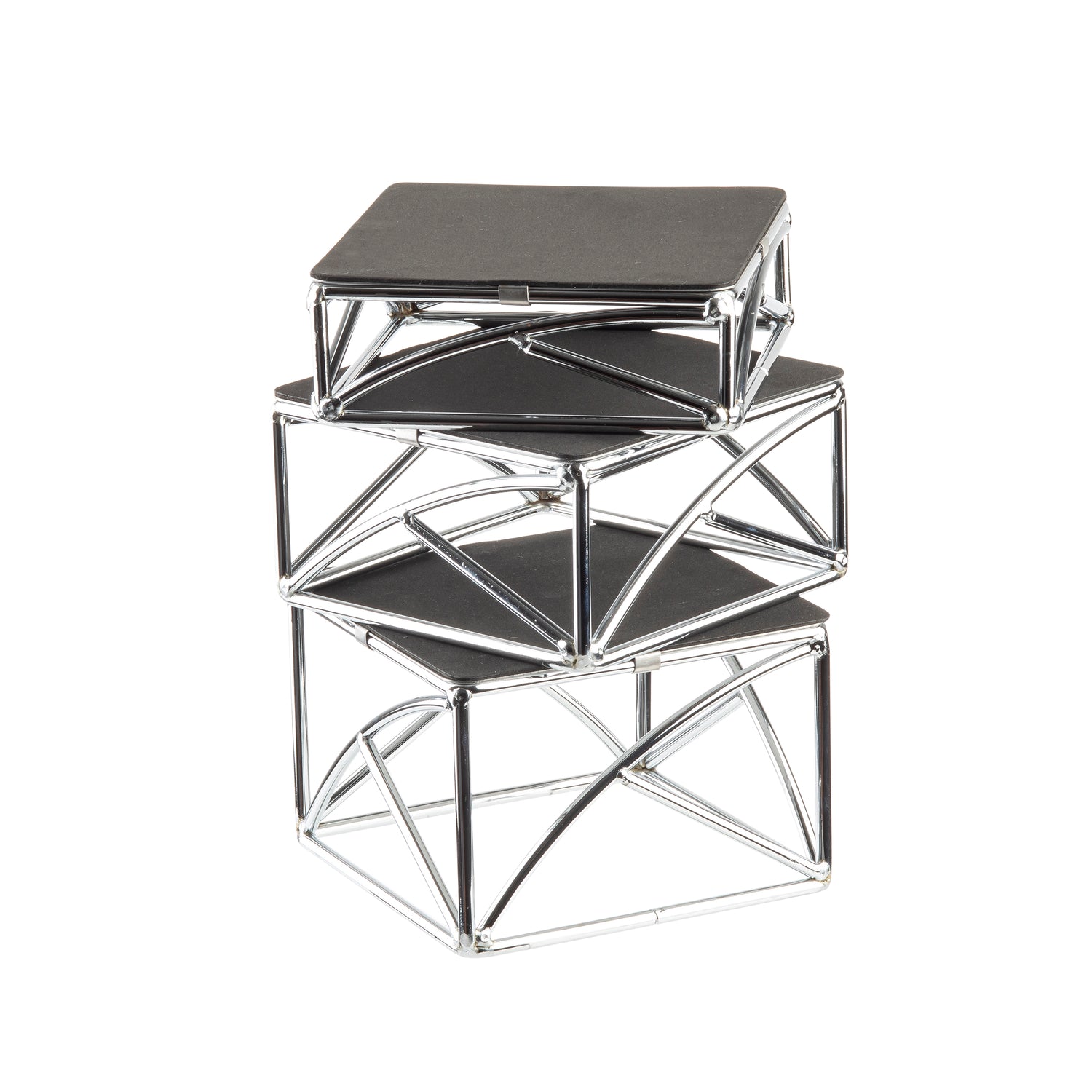 Why choose the Tablecraft CR3 Riser Set over alternatives lies in its durable chrome-plated finish combined with non-slip rubber tops that ensure stability. Its compact, professional design integrates seamlessly into high-frequency food presentation workflows, supporting sanitary cleaning with dishwasher-safe construction. The set's adjustable heights and lightweight handling streamline setup and breakdown processes, making it a reliable addition to any commercial catering or buffet operation.