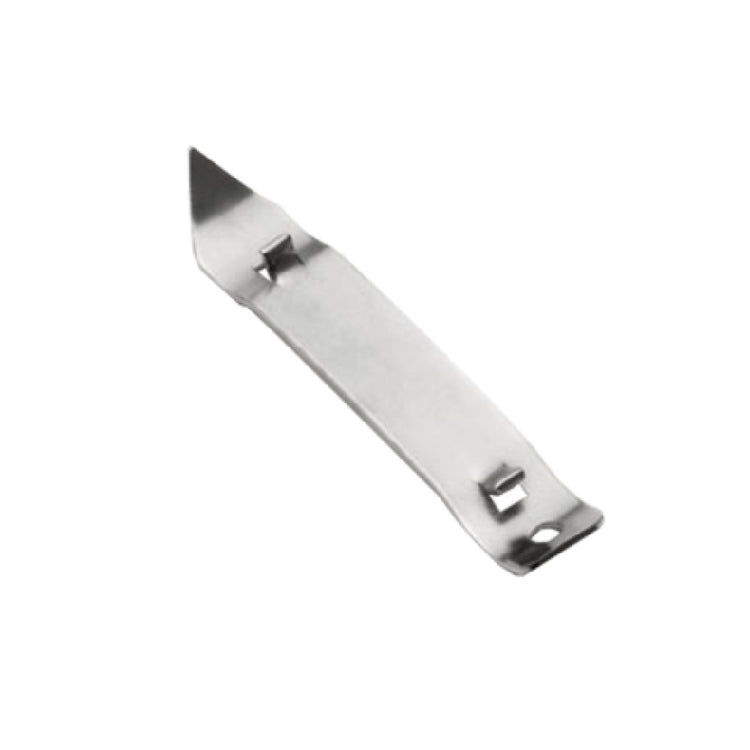 The Tablecraft CT109 Can Tapper features a nickel-plated steel construction with overall dimensions of 4 inches in length, 0.75 inches in width, and 0.5 inches in height. It weighs approximately 4.75 lbs per case, each case containing 60 units, making it suitable for high-volume beverage dispensing applications. This model does not specify electrical requirements or refrigeration considerations, as it is a manual accessory. Its corrosion-resistant finish supports quick cleaning routines. The product's dimensions ensure compatibility with most standard beverage cans, simplifying integration into existing service setups, especially in busy commercial kitchens or beverage stations. Its robust design allows for prolonged use in demanding environments, contributing to operational efficiency and product presentation clarity.