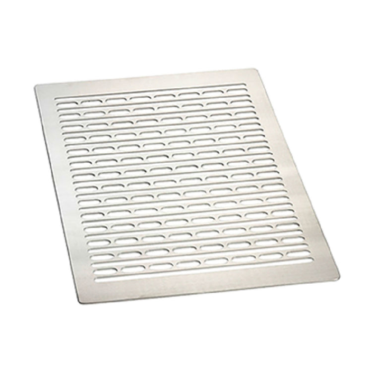 The Tablecraft CW1010BRS Cold Food Template is a stainless steel foodservice component designed for precise cold food display and storage in commercial kitchens. Measuring 12-7/8" x 21-1/4", it features a single well with holes engineered to facilitate cold air circulation, aiding in food preservation without excess condensation. Its brushed finish enhances durability and ease of cleaning, making it suitable for high-volume food presentation environments such as buffet lines, salad stations, and prep areas. The design ensures compatibility with commercial cold table inserts and facilitates efficient workflow in temperature-sensitive food storage applications. Constructed from high-grade stainless steel, this unit emphasizes longevity and sanitation in foodservice operations, offering a reliable solution for cold food presentation needs.