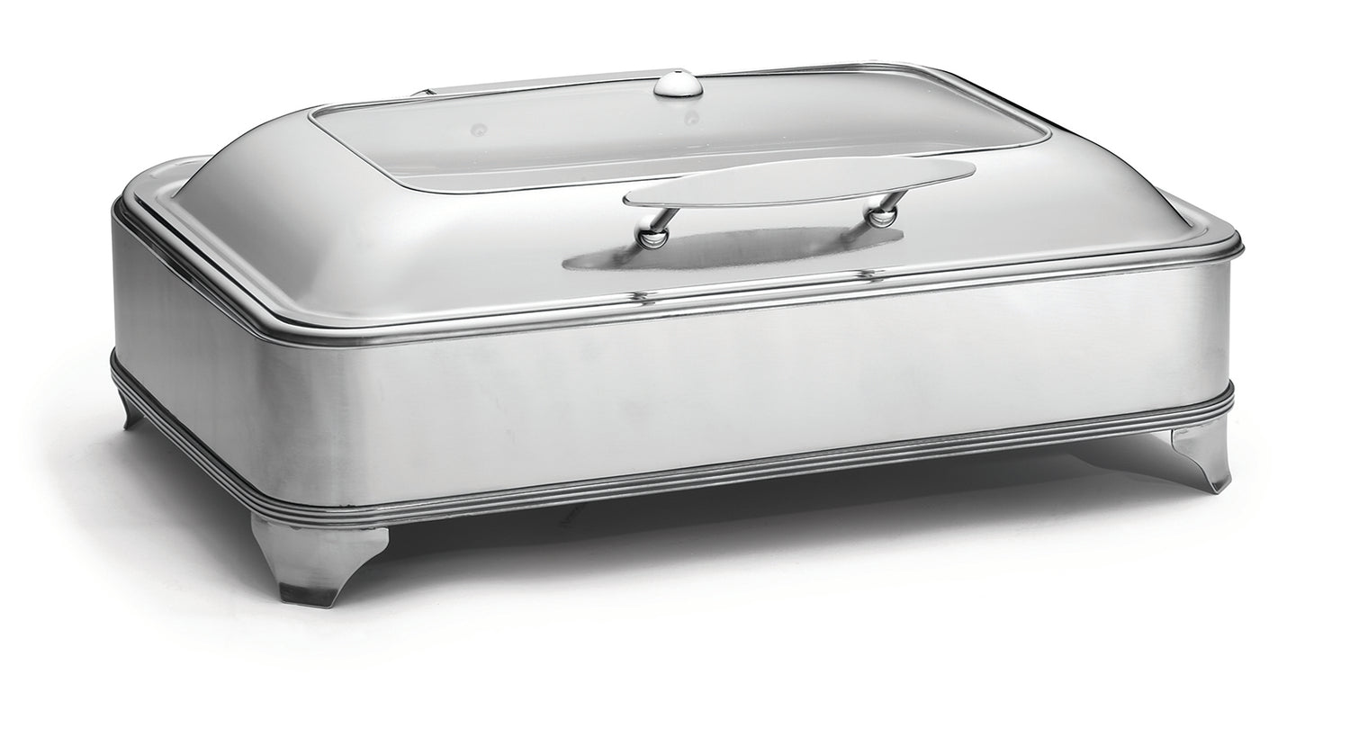 The Tablecraft CW40160 Electric Chafer Dish With Stand is a commercial-grade foodservice equipment designed for durable hot food display and serving. Crafted from high-quality stainless steel, this full-size chafing dish features a 9-quart capacity (10-1/8 quart filled capacity) with precise dimensions of 23" x 17" x 6". It includes a drop-in, slow-close hinged cover with a viewing window, a condensation catch, and a steam vent for optimal temperature regulation. Powered by a 700-watt electric heater, this unit offers consistent heat distribution, supporting catered events, banquet halls, and institutional dining. Its robust construction and dishwasher-safe components ensure easy maintenance and long-term durability.