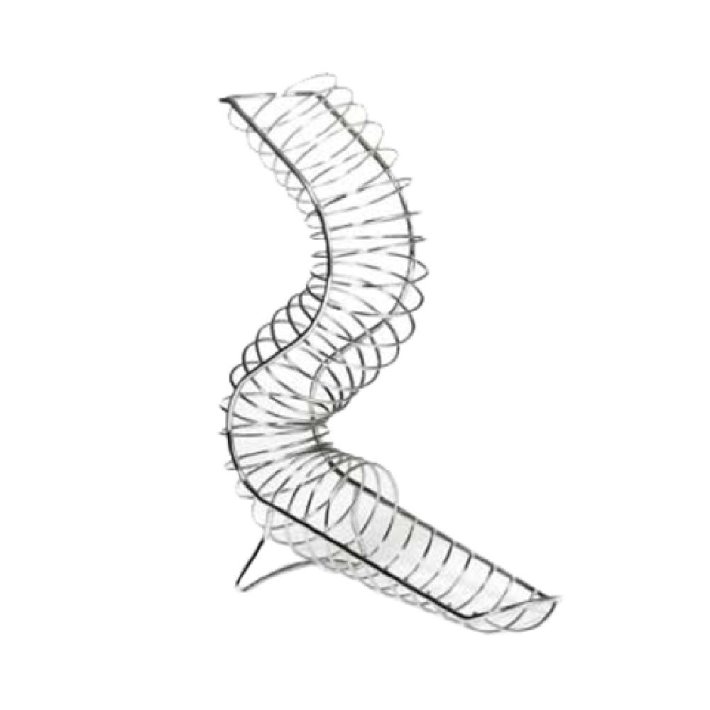 The Tablecraft FC1649 Meranda™ Fruit Basket is a commercial-grade metal display solution designed for foodservice environments. Measuring 14 inches in width, 6-1/4 inches in depth, and 18 inches in height, this vertical basket is crafted from chrome-plated steel and features a curved, free-form shape. Its robust construction and sleek chrome finish provide durability and a polished presentation for fresh produce, appetizers, or other display needs in professional kitchens, buffet lines, or retail settings. The hand wash-only cleaning requirement ensures maintenance of its surface integrity, making it suitable for high-traffic foodservice operations seeking efficient produce or display storage.