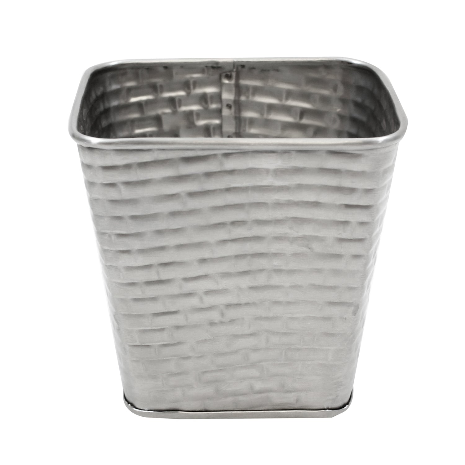 The Tablecraft GTSS4 Brickhouse Collection™ Fry Cup is a commercial-grade 20-ounce stainless steel container designed for precise portioning and efficient handling of fried foods, such as French fries. Measuring 4" x 4" x 3-1/2", it features a tapered, square design with a brick pattern texture that enhances grip and visual appeal. This fry cup is dishwasher safe, making it suitable for high-volume foodservice operations requiring durable and easily maintainable serving accessories, ideal for fast-paced restaurants, concession stands, and industrial kitchens.