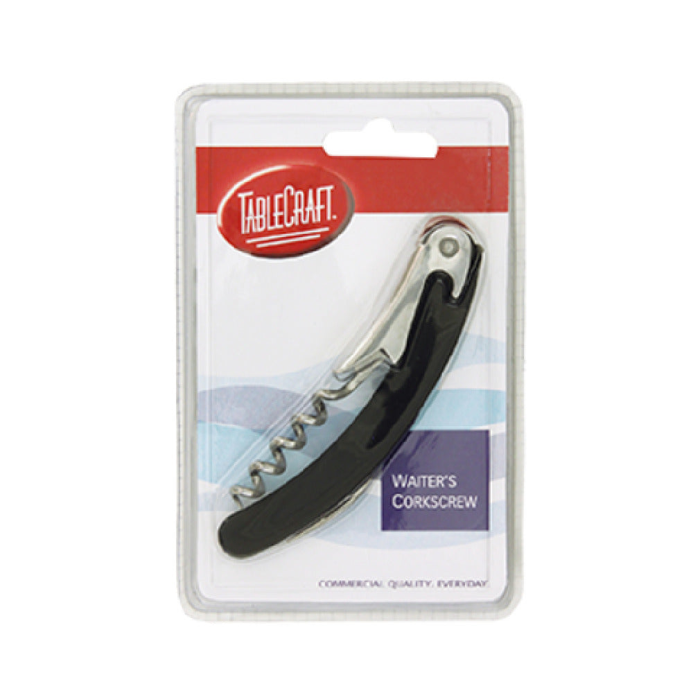 A commercial corkscrew is a professional-grade wine opener designed for high-volume hospitality settings. Typically, equipped with durable metal blades and ergonomic handles, it facilitates fast and efficient cork removal to support busy bar and restaurant workflows. The Tablecraft H1230C is an example of a twist & pull style corkscrew with a sturdy metal blade and impact-resistant rubber handle, suitable for frequent use in high-traffic beverage stations. It is primarily utilized in bars, hotels, and catering services where reliable operation and ease of cleaning are essential for maintaining service speed and sanitation standards connected to wine and beverage service. The H1230C’s durable construction ensures it withstands daily rigorous use, making it ideal for mid-volume hospitality operations.