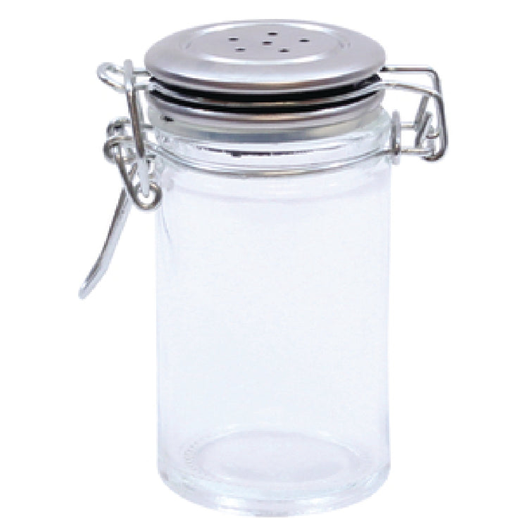 A commercial salt and pepper shaker is a high-capacity dispensing container designed for frequent use in professional foodservice environments. Constructed from durable glass with a stainless steel clip top, it facilitates quick refills and secure storage of seasonings. These shakers are primarily used on restaurant tables, buffets, and catering stations, supporting efficient workflow and ingredient preservation, particularly in high-volume settings like cafeterias and hotel dining areas.