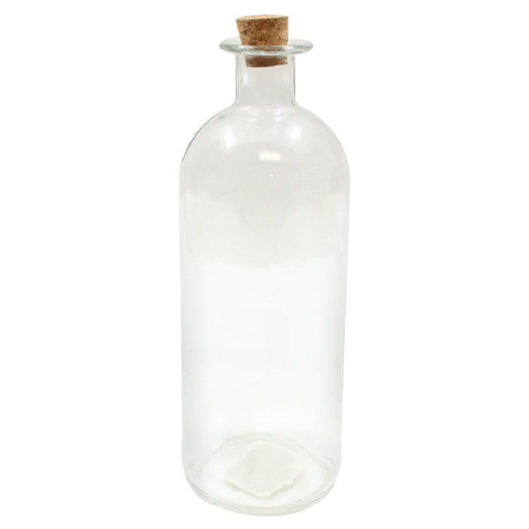 The Tablecraft H92001 oil and vinegar cruet features a 17 oz. capacity, constructed with durable, dishwasher-safe clear glass that ensures longevity and compliance with hygienic standards. The bottle measures approximately 7 inches in height with a diameter of 2.5 inches, weighing 1 pound. The cork stopper is designed for a secure, airtight seal, supporting consistent freshness. This model is intended for countertop use in moderate- to high-volume kitchens, accommodating busy salad bars, buffet setups, and tabletop condiments. Its materials support frequent cleaning, with a focus on commercial kitchen ergonomics and sanitation. Its construction is optimized for ease of handling, with the glass designed to withstand standard operational temperatures, and the cork providing a reusable, sealed closure.
