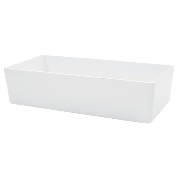 Designed for professional kitchens, the Tablecraft M4027WH combines robustness and practicality with a 3-quart capacity, impact-resistant melamine build, and heat safety up to 158°F/70°C. Ideal for moderate throughput environments like restaurants and catering operations, it offers space-efficient rectangular shape and dishwasher compatibility for streamlined workflows.