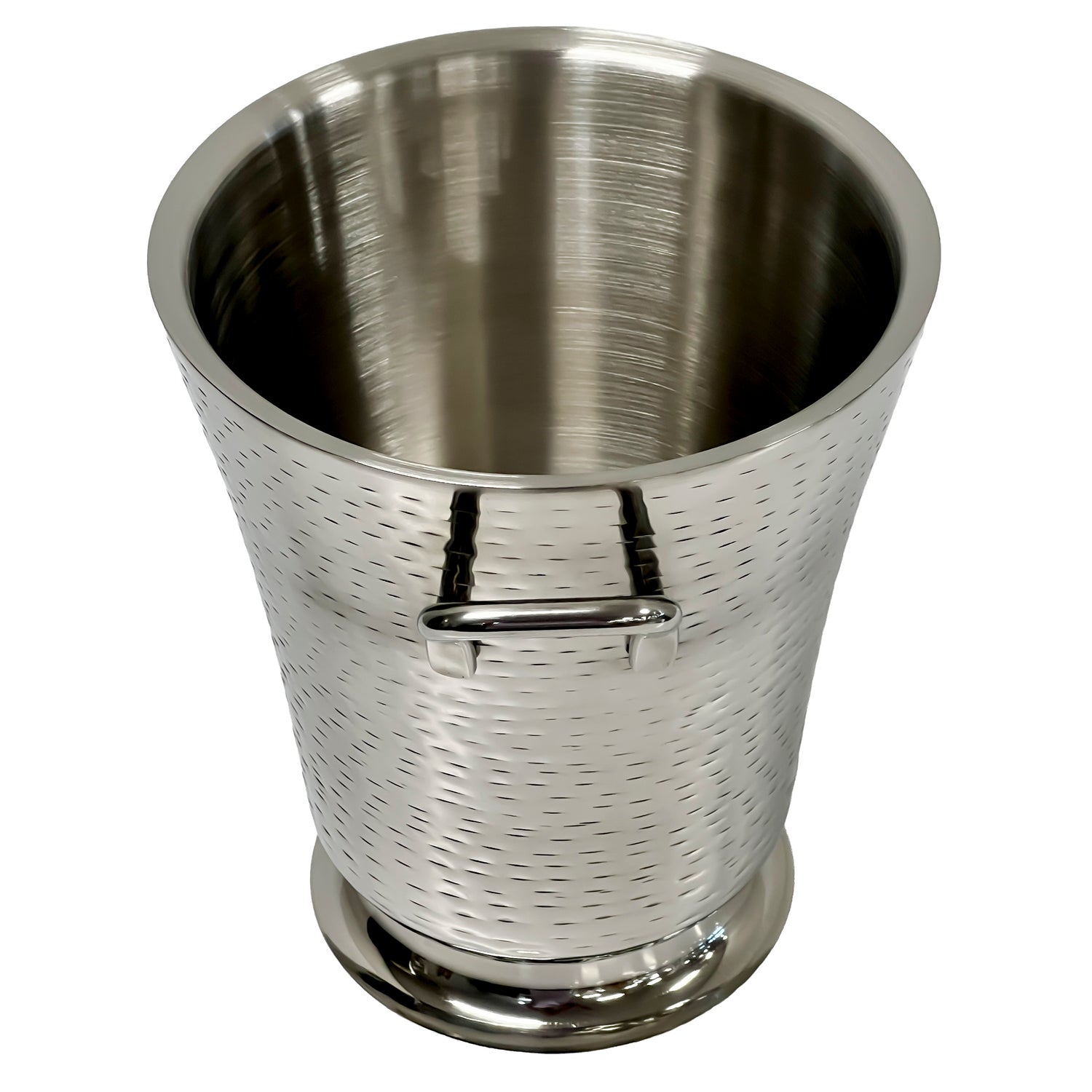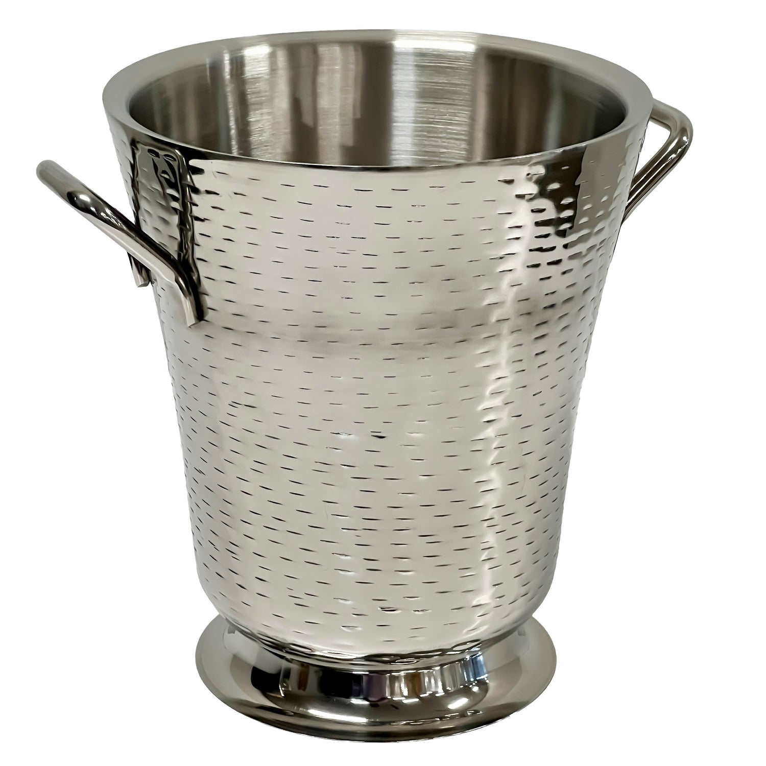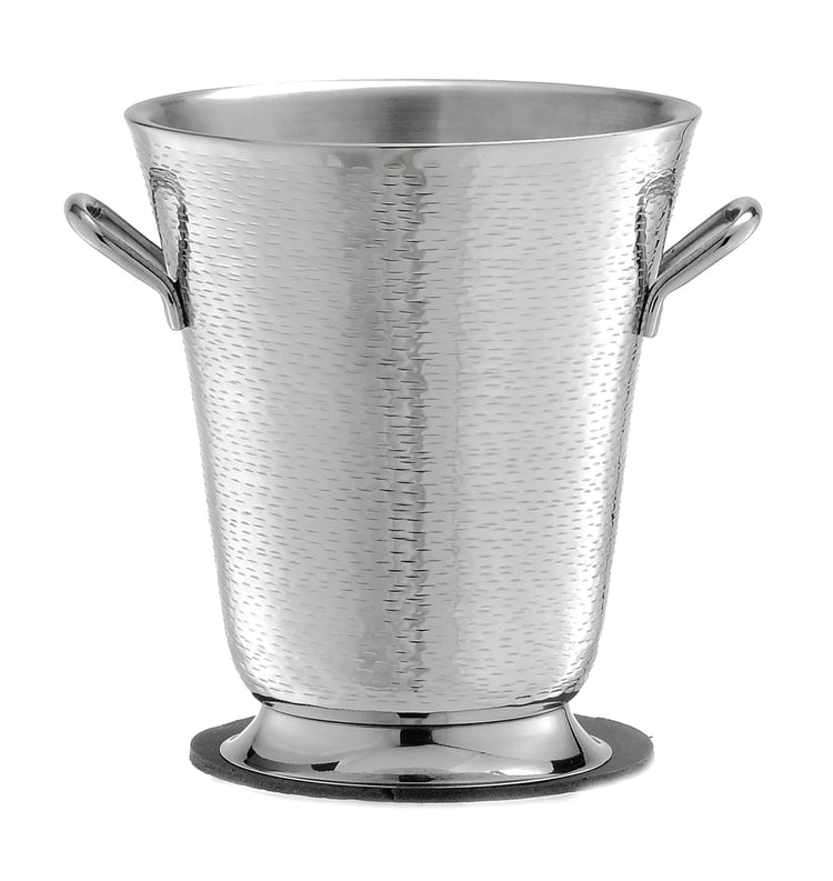 The Tablecraft RWB119 Remington Collection™ Bucket with Handles is a professional-grade stainless steel wine bucket designed for commercial foodservice environments. With a 8-1/2" diameter and 9-3/4" height, it features double-wall insulation, ensuring optimal temperature retention for chilled beverages. Compatible with stand 5398, this dishwasher-safe unit combines durability with ease of cleaning, making it suitable for wine service, catered events, and hospitality use.
