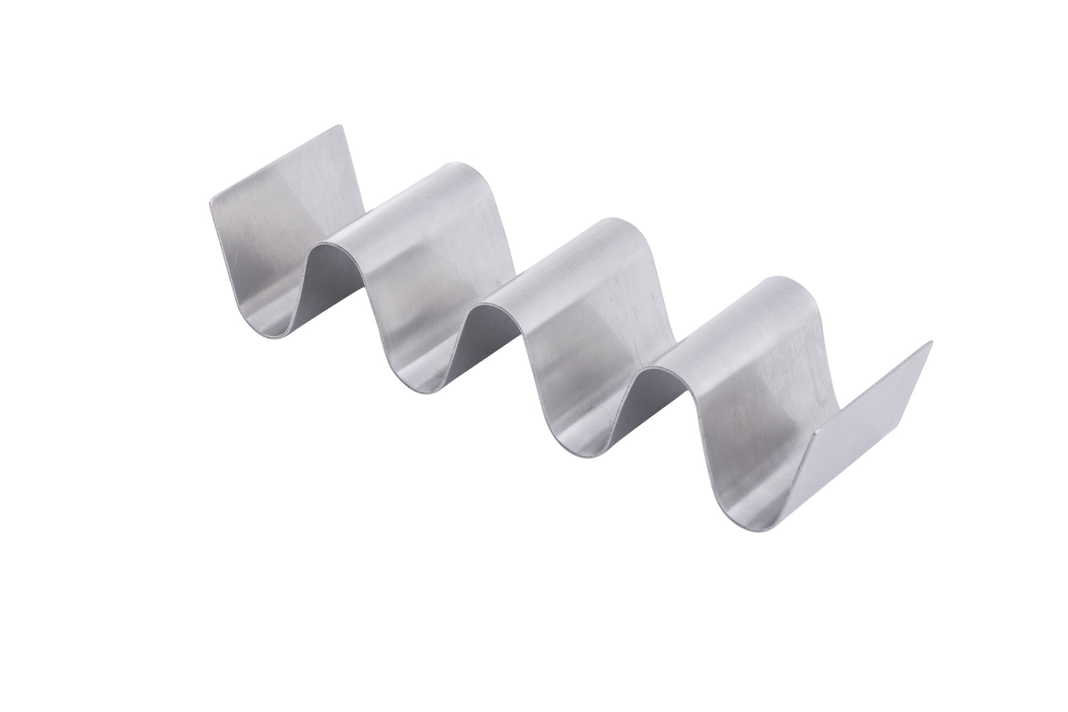 Designed for durable, commercial-grade taco presentation, the Tablecraft TRS34 model features a solid stainless steel construction that withstands frequent handling and cleaning. Unlike lighter or plastic alternatives, it offers enhanced longevity and sanitation, making it suitable for high-traffic foodservice environments. Its precise dimensions and dishwasher-safe design optimize workflow efficiency, providing a reliable component in taco stations and catering setups, with a focus on product presentation and ease of maintenance.