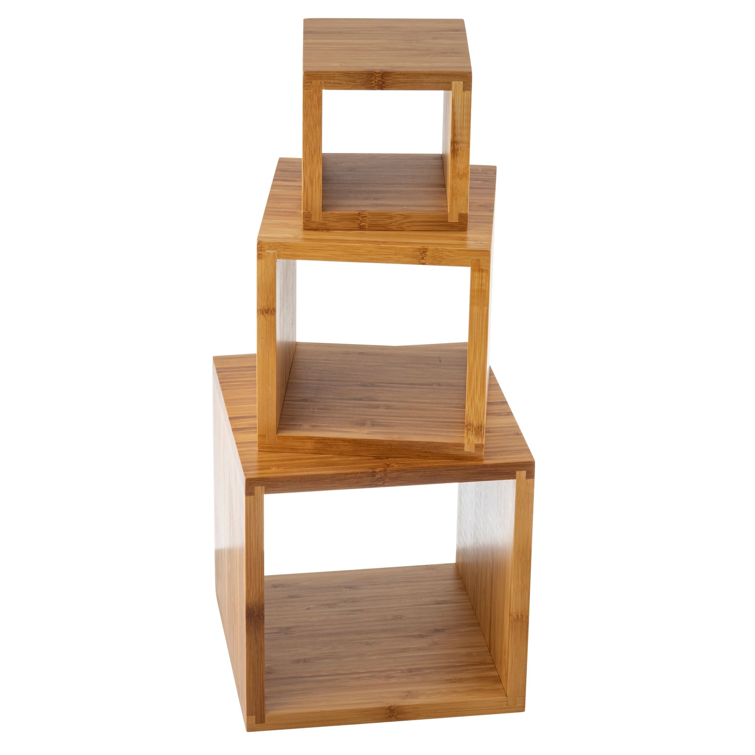 Reliable and well-constructed display riser sets like Tablecraft WBAM3 are essential for organized and professional presentation in foodservice. Designed for moderate workloads, these sets support efficient workflow while providing stable, customizable elevation for platters, samples, or promotional items. The durable bamboo material ensures longevity and easy maintenance, making them suitable for retail counters, buffet lines, or catering stations.