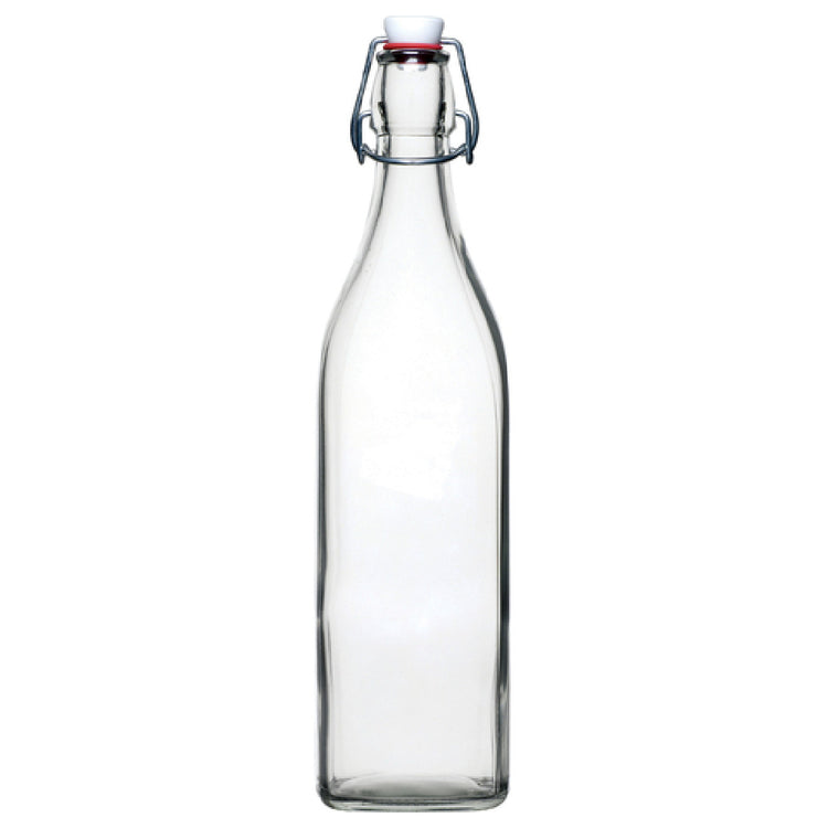 The Tableware Solutions USA B14720 Swing Bottle 34 Oz. (1 L) Glass is a commercial-grade beverage container designed for precise liquid storage and dispensing in foodservice environments. Crafted from clear, durable glass, this 34 oz. (1 L) swing bottle features a tight-sealing lid suitable for professional applications requiring consistent portion control and contamination prevention. Its robust construction supports repeated use in busy kitchen settings, making it ideal for establishments such as restaurants, bars, and catering services that demand reliable, food-safe glassware for liquid ingredients and beverages.