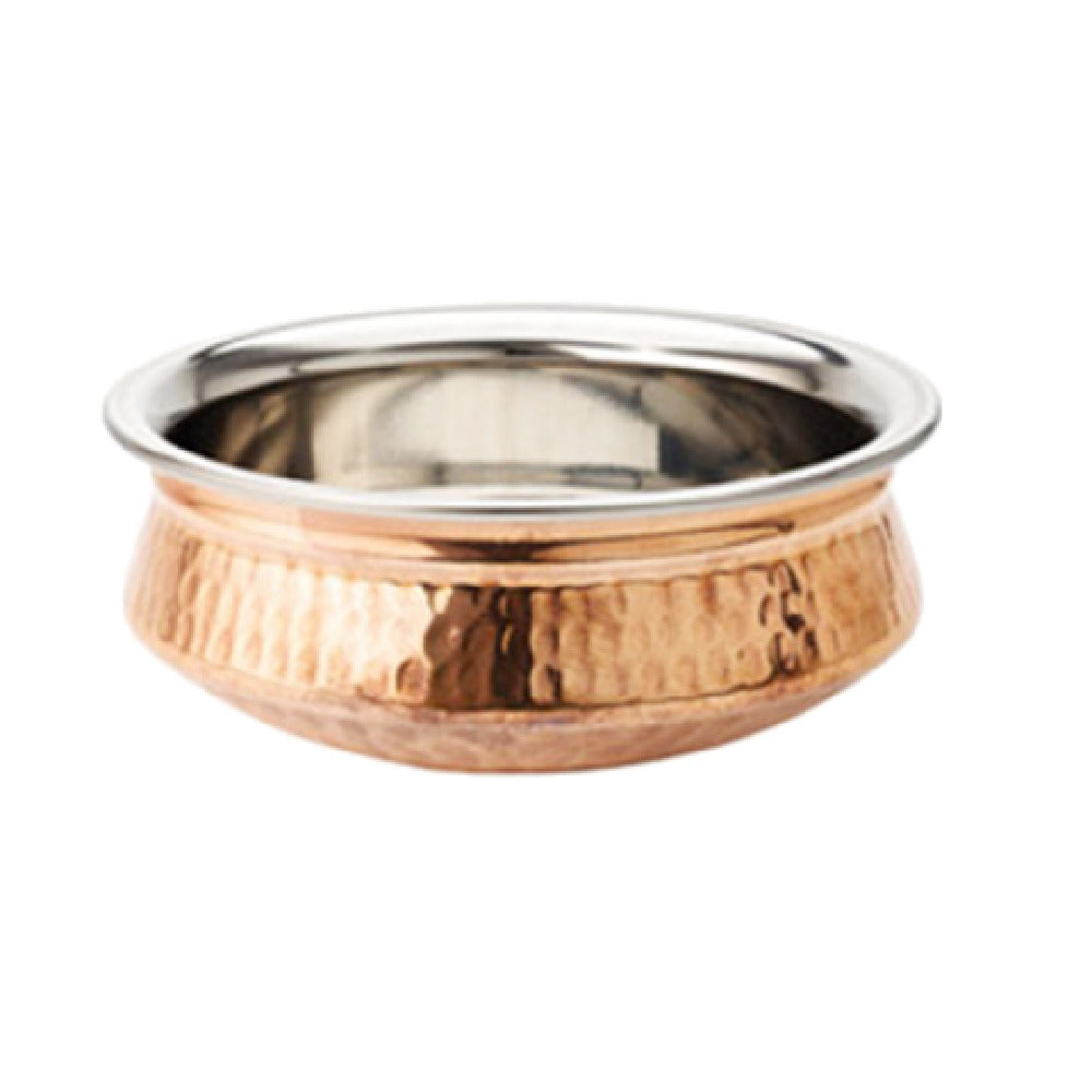 A commercial metal bowl is a sturdy, food-safe container made from durable metals such as copper, stainless steel, or aluminum, designed specifically for high-frequency use in professional kitchens. The Tableware Solutions USA F91059 Handi Dish is an example of such equipment, crafted from impact-resistant copper with a capacity of 16.5 ounces and a 6-inch diameter, typically used for portioning, presentation, or ingredient staging in restaurant and catering environments. It aids in efficient workflow and precise food presentation, especially suited for mid-volume service settings.