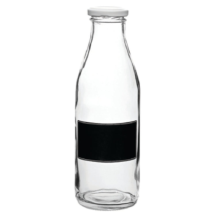 Tableware Solutions USA R90112-BLA 17-1/2 Oz Bottle with Lid Glass Clear Blackboard - 12/Case