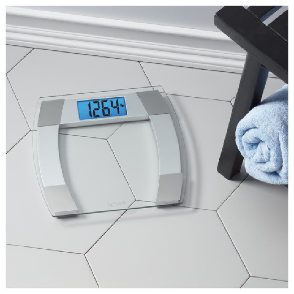 Taylor 5283423 500 lb Digital Bath Scale with Blue Back-light Glass
