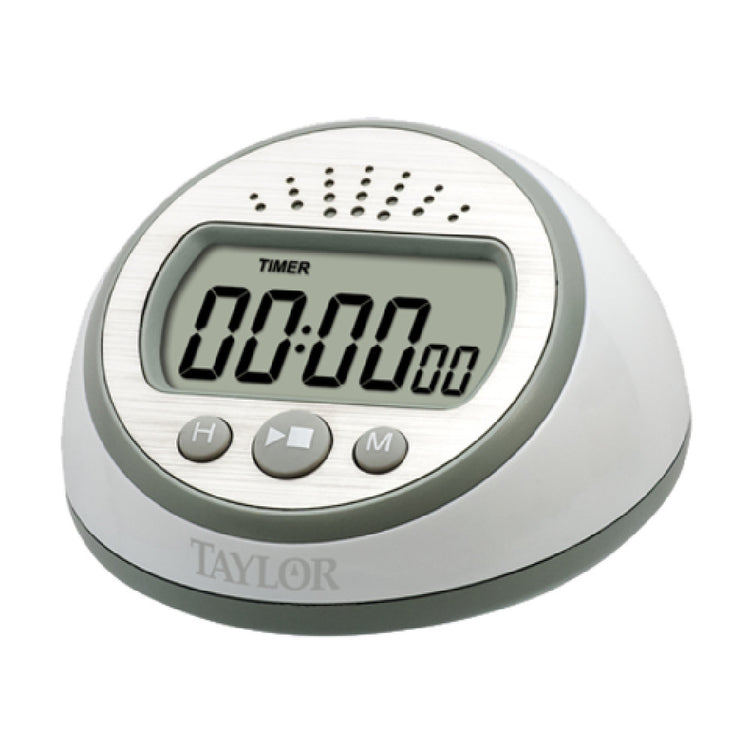 Taylor Precision, 5873, Timer/Clock, digital, 23 hours, 59 minutes and 59 seconds timer range, continuous ring, up to 95 decibels, count up/count down feature, plastic, requires (2) AAA batteries (included), white