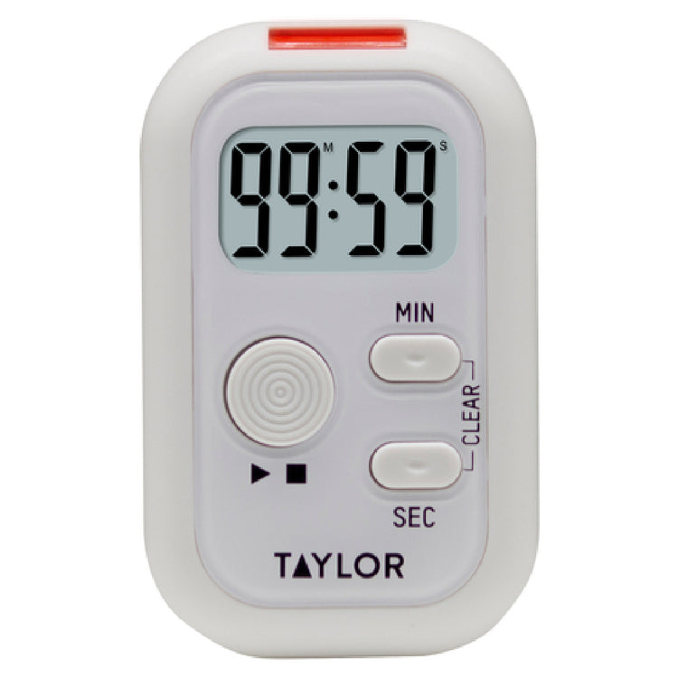 The Taylor 5879 Flashing Light Timer Digital Alerts With Sound is a professional-grade electronic timing device designed for commercial foodservice environments. It features a precise digital display and incorporates multiple alert modalities, including flashing lights, audible sounds, and optional vibration. Equipped with a magnetic mounting system, it can also be positioned via clip or stand for versatile installation. This timer is tailored for foodservice operations requiring accurate, easy-to-monitor countdowns and reminders, making it an essential tool for kitchens, baking areas, and production lines that demand reliable timing capabilities.
