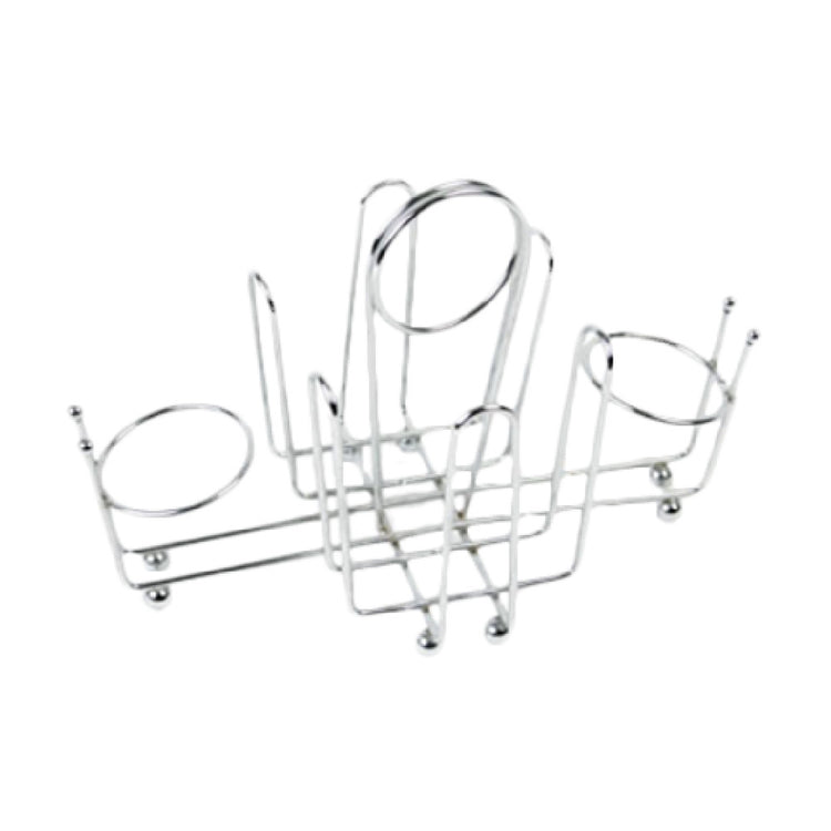 The Thunder Group CRSP956 packet holder integrates a sturdy wire frame with a chrome plated finish for long-lasting durability in commercial kitchens. Its precise dimensions accommodate various packet sizes, supporting smooth workflow and easy cleaning. Designed for countertop use, it offers quick access to condiments, reducing service times in busy foodservice settings. The open wire design facilitates airflow and prevents packet damage, making it suitable for high-traffic dining environments and self-service stations.