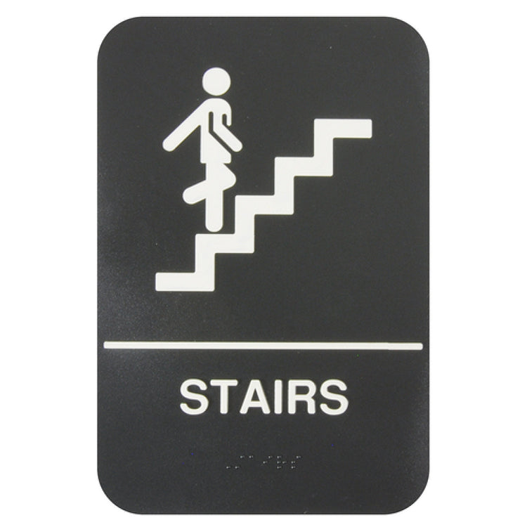 Thunder Group, PLIS6954BK, Information Symbol Sign, 6" x 9", "Stairs", with braille, self adhesive backing, white lettering on black background (6 each minimum order)