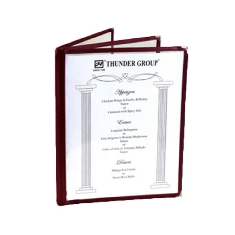 Thunder Group PLMENU-L3MA 8-1/2 Inch Plastic Menu Cover Maroon with 3-page Book Fold