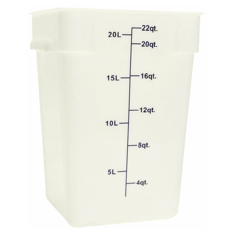 This food storage container offers a high-capacity 22-quart volume with scratch and break resistance, ideal for medium-volume culinary operations. Its polypropylene construction provides thermal resilience from -40° to 210°F, supporting hot and cold storage. Designed for ease of cleaning and stacking, it enhances workflow in commercial kitchens. Its sturdy build ensures reliable durability under rigorous handling, fitting seamlessly into prep stations and storage racks, facilitating efficient bulk food management for institutions and catering services.