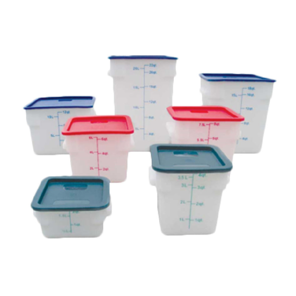 This food storage container features a robust polypropylene construction, with a weight of 3.3 lbs, ensuring durability and ease of handling during routine operations. It is compatible with standard storage racks and stacking systems, promoting space efficiency. The container's operating temperature range from -40°F to 210°F supports hot and cold food storage. Its design includes a square shape for optimal use of storage compartments, with dimensions optimized for commercial kitchen workflows. The product is certified to meet food safety standards, facilitating compliance and sanitation. Its form factor and material make it highly resistant to scratches and breakage, reducing downtime and replacement costs. The container integrates seamlessly into prep and storage workflows, supporting high-volume foodservice operations with reliable, long-lasting performance.