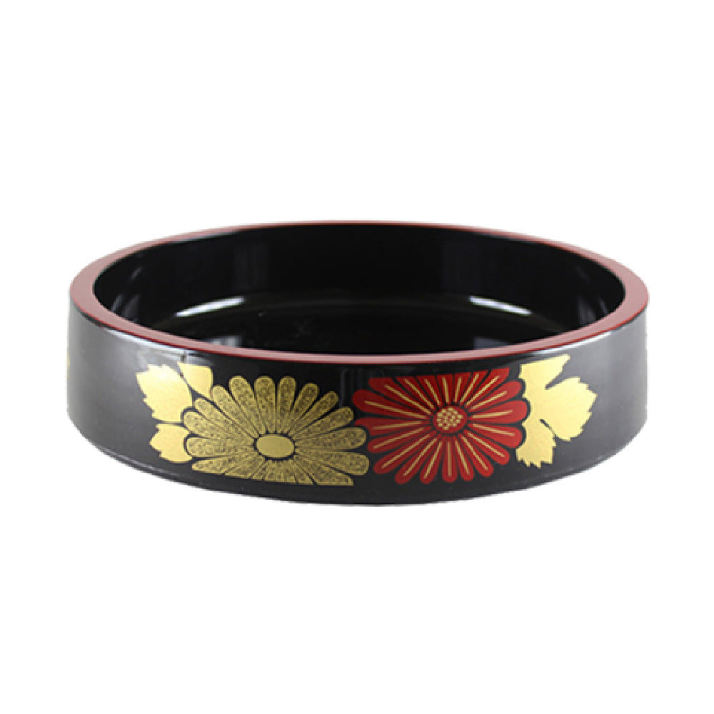 Thunder Group PLSPT1102 11-3/4 Inch Round Sushi Party Tray Black ABS Plastic with Flower Pattern Red Trim