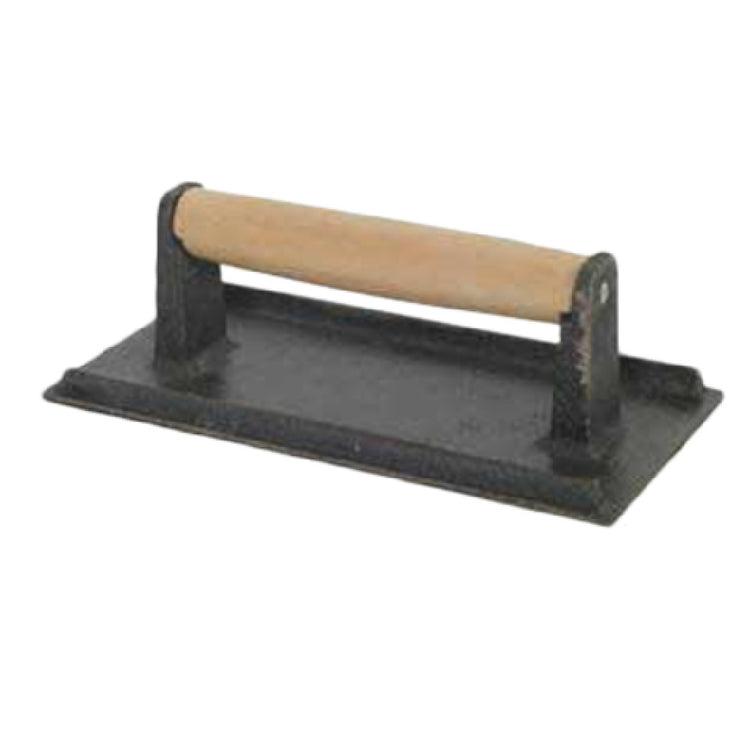 This cast iron steak weight provides reliable pressure with a heat-resistant ribbed bottom, ensuring uniform cooking and meat tenderness. Its 5" x 9" surface accommodates standard cuts, while the sturdy wood handle offers ergonomic control. Designed for high durability, it withstands frequent thermal cycling and cleaning routines, making it ideal for busy kitchens. Its precise weight distribution enhances workflow efficiency during meat prep. Easy to clean and maintain, it integrates seamlessly into countertop stations for consistent results in steak and meat tenderization processes.