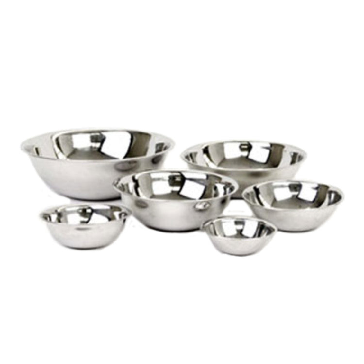 The Thunder Group SLMB208 mixing bowl features a 16-quart capacity, constructed from heavy-duty 22 gauge/0.8mm stainless steel, ensuring resilience during rigorous commercial use. Its mirror-finish surface promotes hygiene and simplifies maintenance. Weighing approximately 3.2 lbs, the bowl is lightweight yet durable, facilitating ease of handling. Designed with a flat bottom for stability and a curved lip for controlled pouring, this product is compatible with various kitchen workflows. The stainless steel material provides resistance to corrosion and staining within standard operating temperatures, making it suitable for frequent cleaning and heavy handling environments.
