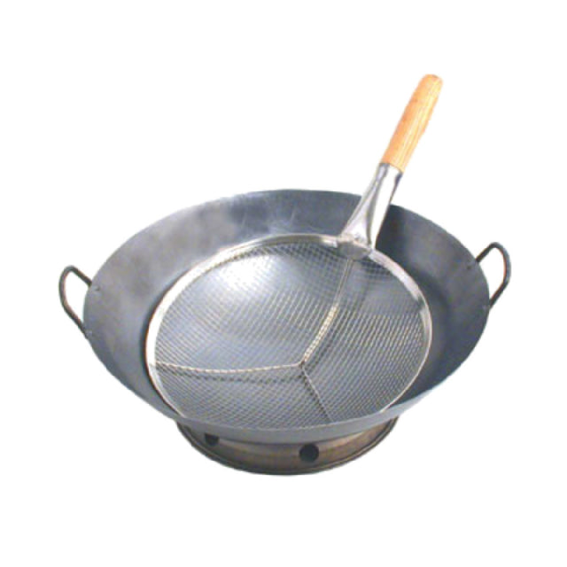 The Town 42411 Cantonese Strainer 11" Dia Reinforced Stainless Steel Mesh And Frame is a professional-grade skimmer designed for commercial foodservice applications. Constructed with durable stainless steel, it features an 11-inch round mesh bowl supported by a reinforced frame, offering efficient debris removal from frying, soups, and broths. The 8-inch wood handle provides a sturdy grip for precise control, ensuring reliable performance in high-demand kitchen environments. Its technical specifications include a lightweight build of just 0.75 lbs and a length of approximately 19 inches, making it suitable for intensive use in busy kitchens without compromising maneuverability or durability.