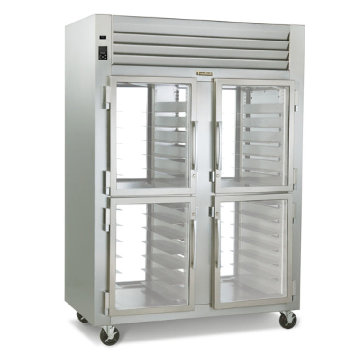 A commercial pass-thru refrigerator is a highly functional refrigeration unit designed for high-traffic foodservice environments that require dual-sided product access. The Traulsen G21014P is an example of such equipment, featuring a two-section layout with hinged glass doors on both sides, providing maximum visibility and quick access for staff. It employs self-contained, top-mounted refrigeration with environmentally friendly R-290 refrigerant, offering a 50.2 cu. ft. capacity tailored for storing perishable items in busy commercial kitchens, including supermarkets, catering operations, and hospitality venues, where efficient workflow and product presentation are critical for operational efficiency and customer service. Its construction emphasizes durability, sanitation, and ease of maintenance, making it well-suited for continuous use in moderate to high-volume foodservice settings.