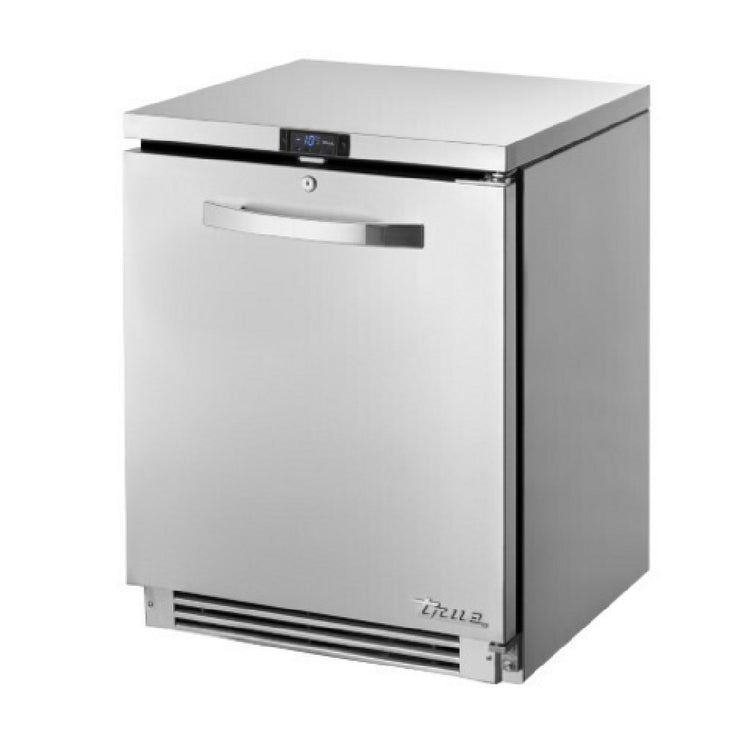 The True Refrigeration TUC-24F-HC~SPEC3 SPEC SERIES® Undercounter Freezer is a commercial-grade refrigeration unit designed for precise temperature control and durability in foodservice environments. This reach-in freezer maintains a consistent -10°F (-23°C) for optimal food preservation. Constructed with all stainless steel exterior, interior, and sides, it ensures high durability and sanitation standards. Its self-contained, rear-mounted refrigeration system uses R290 hydrocarbon refrigerant, providing efficient cooling while minimizing environmental impact. With a 1/4 HP compressor and digital temperature display, this model offers reliable performance for mid-volume restaurant service, hospital cafeterias, and catering operations requiring compact, restaurant-ready freezing capacity. Its robust build and precise temperature management make it an ideal solution for demanding commercial kitchen applications requiring consistent, reliable freezing performance.