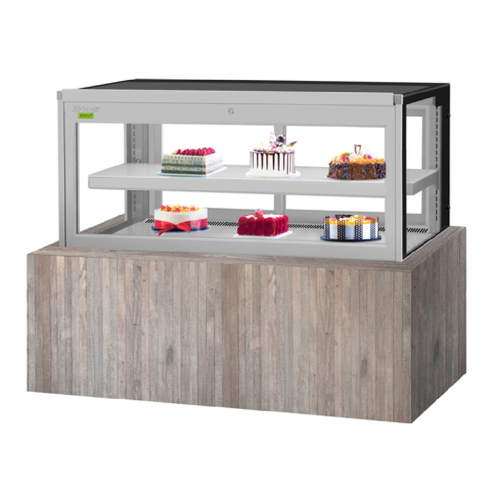 Turbo Air, TBP60-46FDN, Drop-In Refrigerated Bakery Display Case, 61-3/4"W, 15.7 cu. ft. capacity, self-contained refrigeration with self-cleaning condenser, straight front tilt-out tempered glass, tempered glass side pannels, sliding rear doors, digital temperature controller, (1) adjustable tempered glass shelf with stainless steel front & back edges, LED interior lighting, stainless steel floor & airflow grille, 3" swivel casters (rear locking), R290 Hydrocarbon refrigerant, 3/4 HP, 115v/60/1-ph, 7.3 amps, cord with NEMA 5-15P, cETLus, ETL-Sanitation
