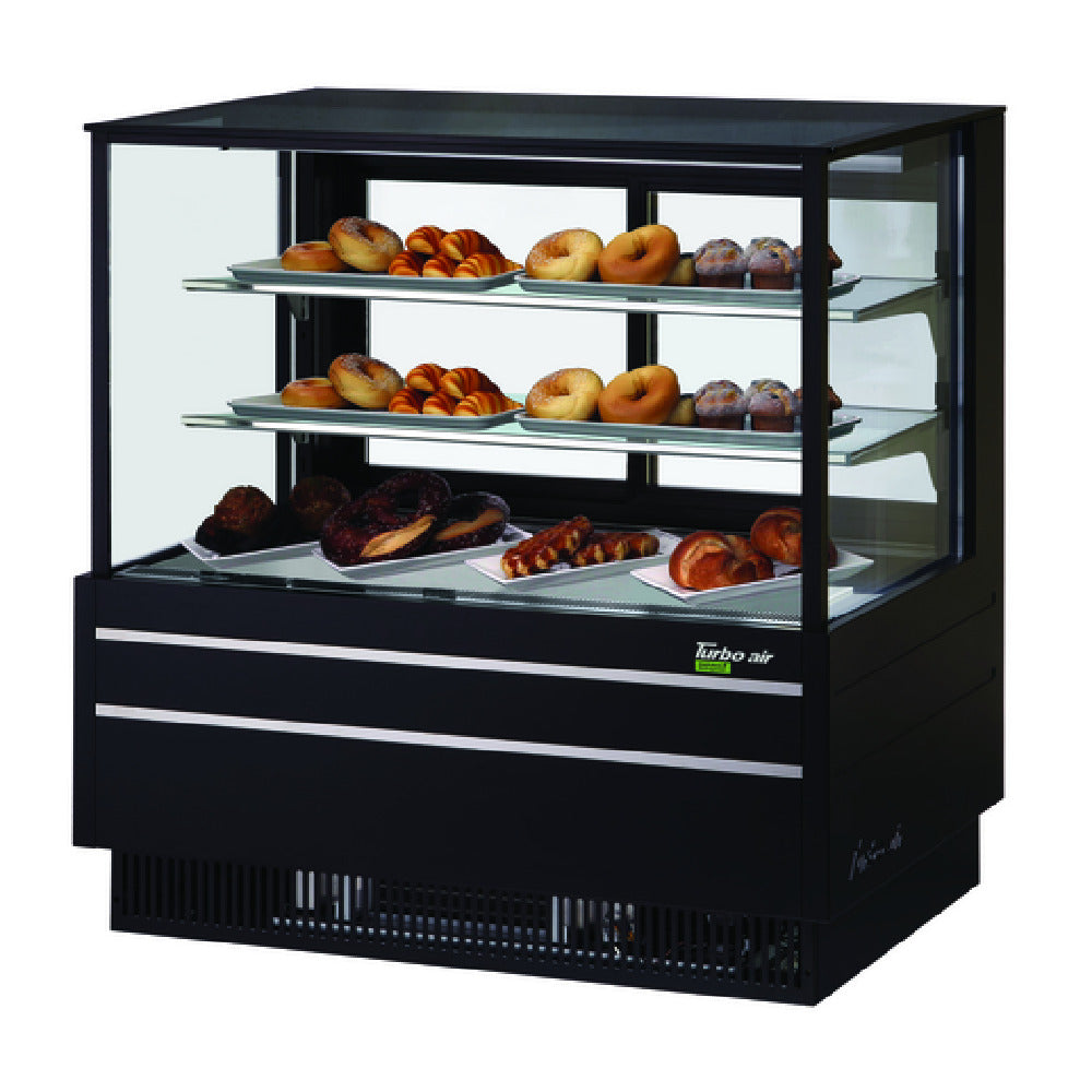 Constructed with heavy-duty stainless steel and tempered glass, the Turbo Air TCGB-48UF-DR-W(B) provides reliable, shop-ready display and storage for bakery operations with moderate throughput. Built for durability and ease of maintenance, it is suited for cafe counters, bakery departments, and retail bakery zones requiring efficient workflow and product visibility without refrigeration needs. This model supports continuous operation in high-demand environments, ensuring product accessibility and presentation in foodservice environments.