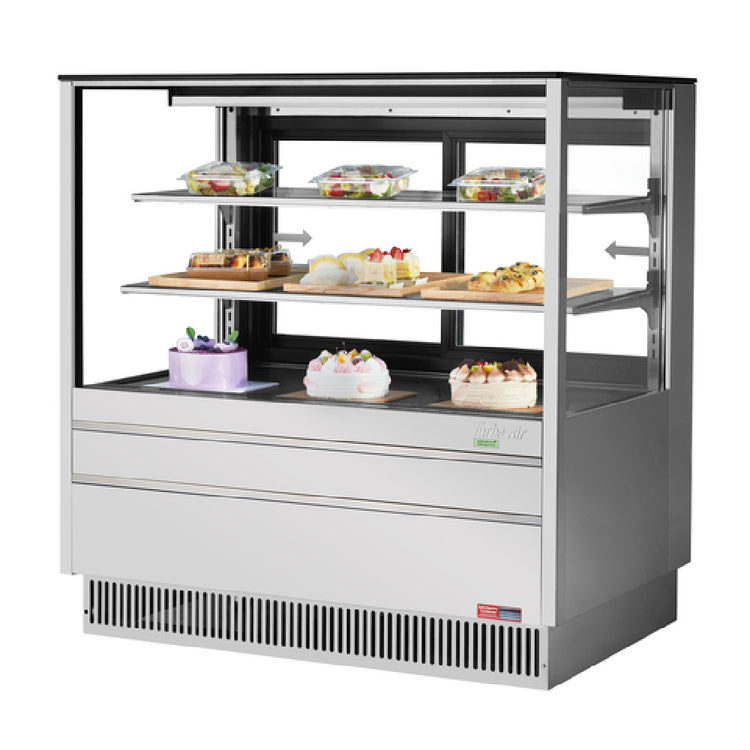 Turbo Air, TCGB-48UF-S-N, Display Case, refrigerated, 15.6 cu.ft. capacity, 47-17/8W x 32-3/4"D x 50-3/4"H, self-contained refrigeration with self-cleaning condenser, straight front tempered glass, sliding rear doors, electronic thermostat with defrost control, 33°F - 41°F temperature range, LED interior lighting, (2) adjustable tempered glass shelves, stainless steel floor & air flow grille, stainless steel exterior, rear access compressor compartment, R290 Hydrocarbon refrigerant, 1/3 HP, 115v/60/1-ph, 7.5 amps, cord with NEMA 5-15P, CSA-Sanitation, cCSAus