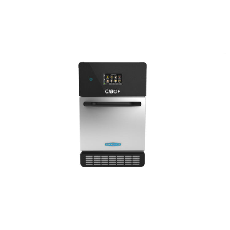The TurboChef CBO-9500-1 CIBO+ Rapid Cook Oven Microwave Impingement by TurboChef (Middleby) is a commercial combination oven designed for rapid cooking applications in high-demand foodservice environments. This countertop, fully insulated electric unit features impingement and microwave technologies, providing fast and consistent heat transfer. Its ventless operation and stainless steel construction support versatile placement in various culinary settings. With a capacity to store up to 40 recipes and a control system with a touchscreen interface, it allows precise programming for optimized workflow. Notably, this model includes a fully integrated catalytic converter, removable grease cover, and a pull-down ergonomic door, ensuring sanitation and ease of maintenance. Technical specifications include dimensions of 15.5" width, 7.68" height, and 13.39" depth, with a power requirement of 208-240V, 60Hz, and 20A, delivering various wattages for different functions such as 3.6 kW for impingement, 2.0 kW for microwave, and 4.0 kW for combined operations, making it suitable for high-efficiency commercial kitchens seeking rapid, versatile cooking solutions.