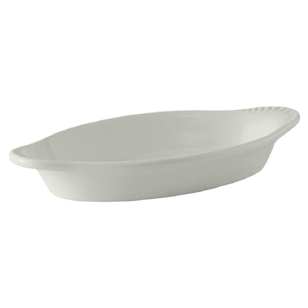 Tuxton BWN-120 12 Oz Oval Rarebit Dish Microwave and Dishwasher Safe Ceramic White - 1 Dozen