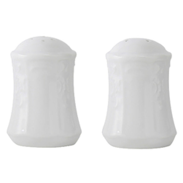 Tuxton CHL-030 Set Porcelain White Embossed Salt and Pepper Shakers - 1 Dozen