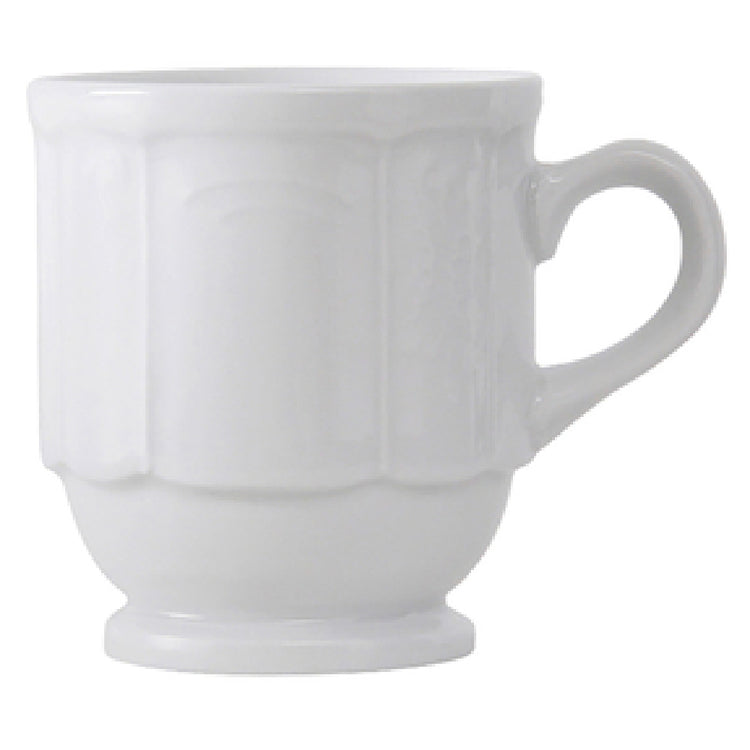 Tuxton CHM-085 9 Oz Mug Stackable Embossed Dishwasher Safe Porcelain White - 3 Dozen/Case