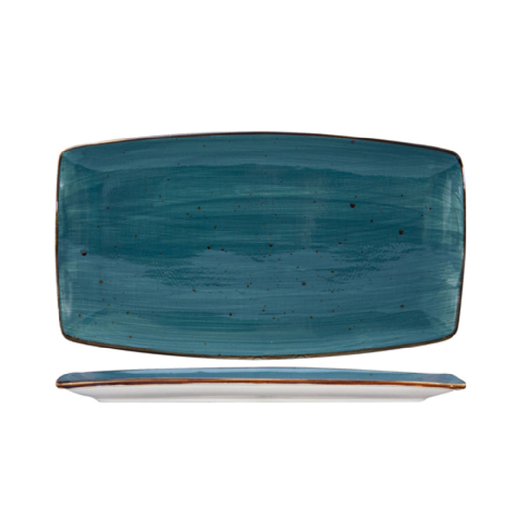 Tuxton GGER553 14 Inch Rectangular Plate Ceramic with Tapered Ends Azure - 1 Dozen