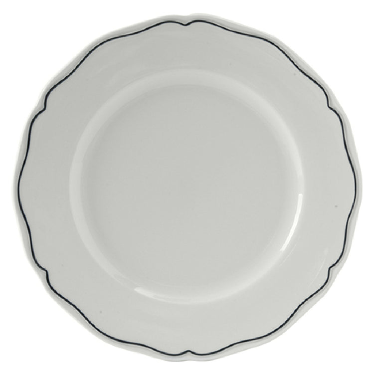 Tuxton SBA-122 12-1/4 Inch Diameter Scalloped Edge Round Plate Porcelain White with Blue Band - 1 Dozen